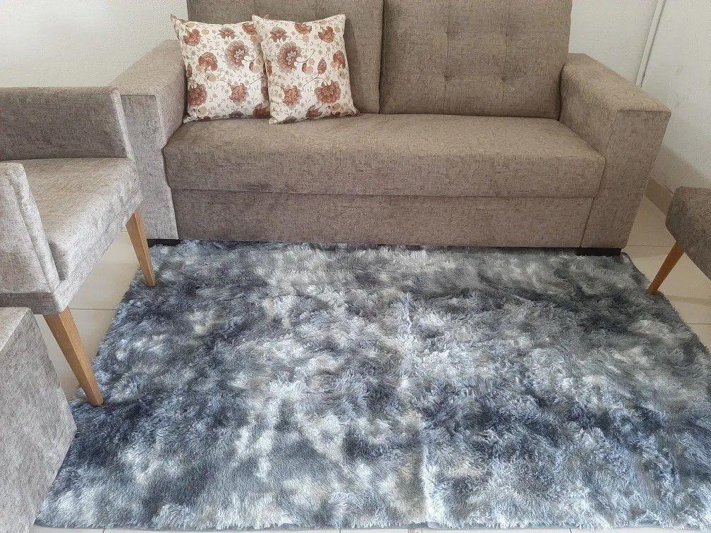 - Tapete peludo cinza mesclado sold