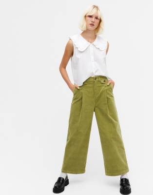 Monki green trousers Sale, Monki Naomi cotton wide leg cord Sale