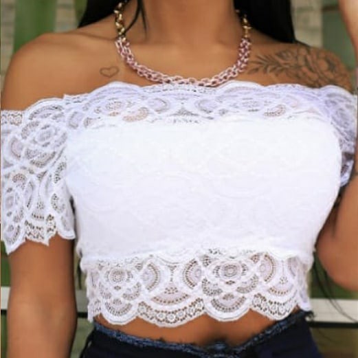 - Cropped de renda ombro a ombro free shipping