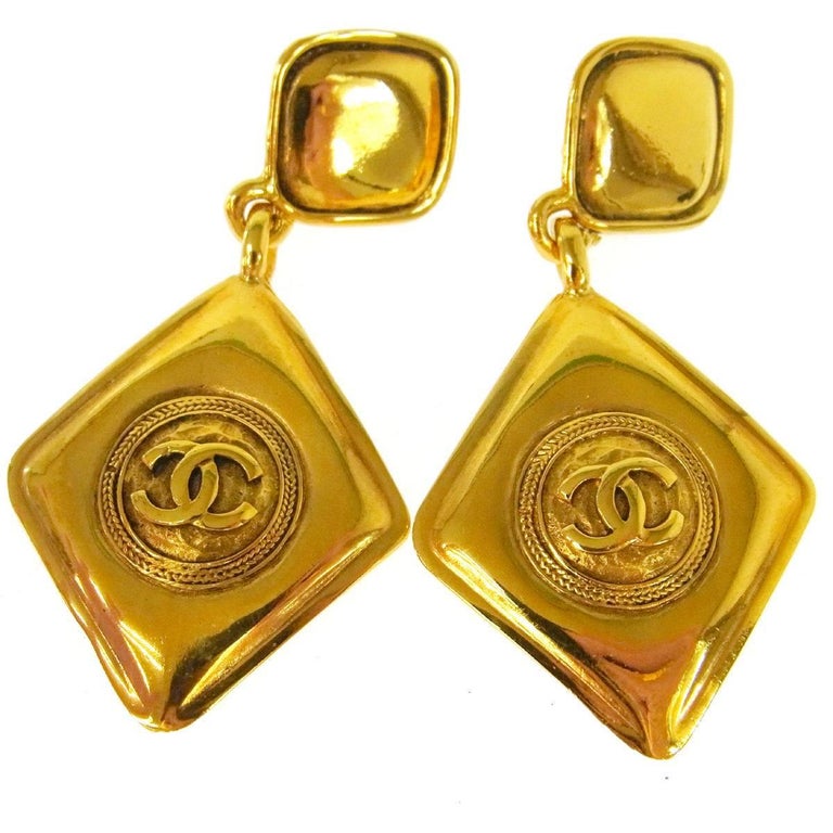 Chanel diamond drop earrings Sale, Chanel Gold Rhombus Charm Diamond Evening Long Dangle Drop Earrings For Sale at 1stDibs Sale