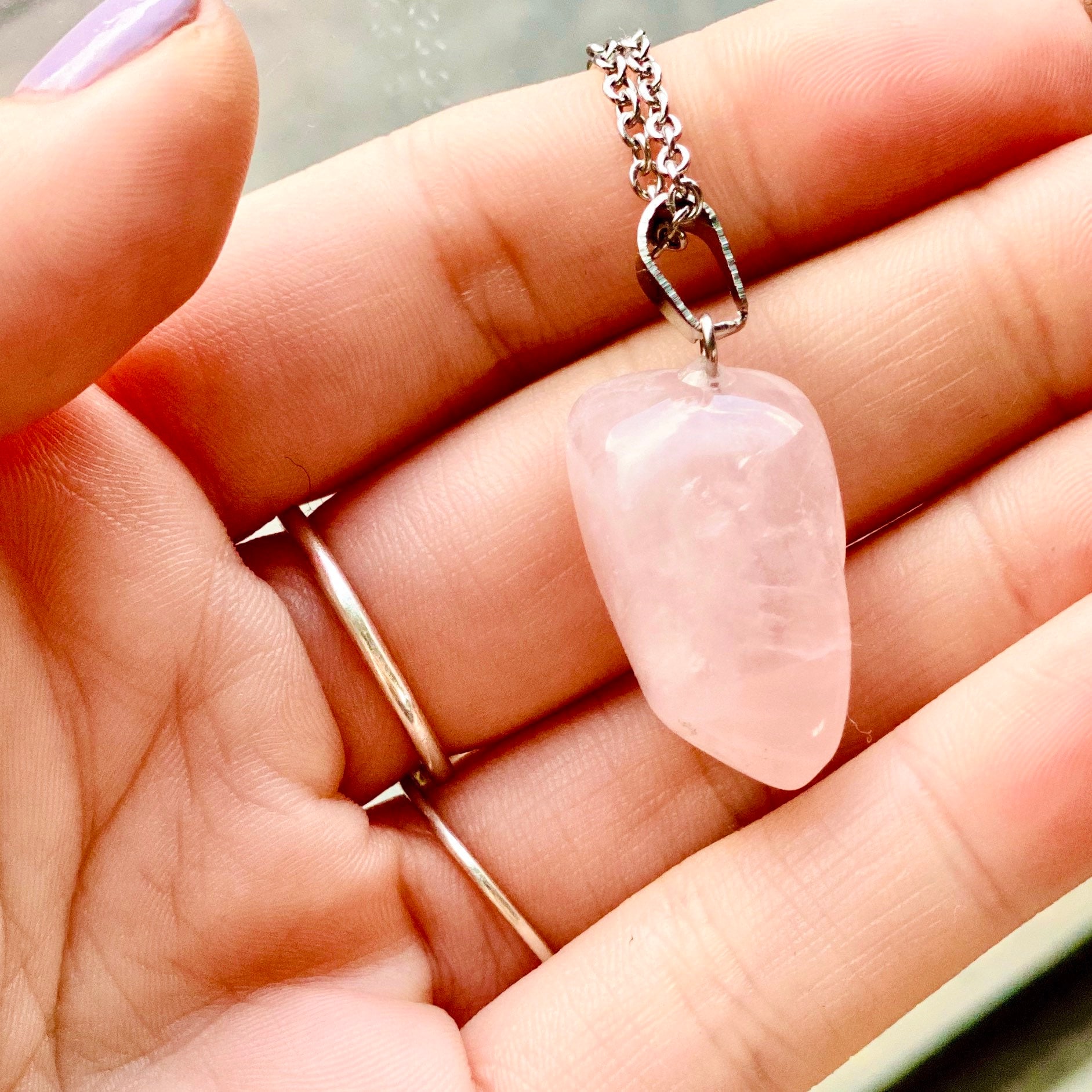 - Crystal necklace rose quartz clearance