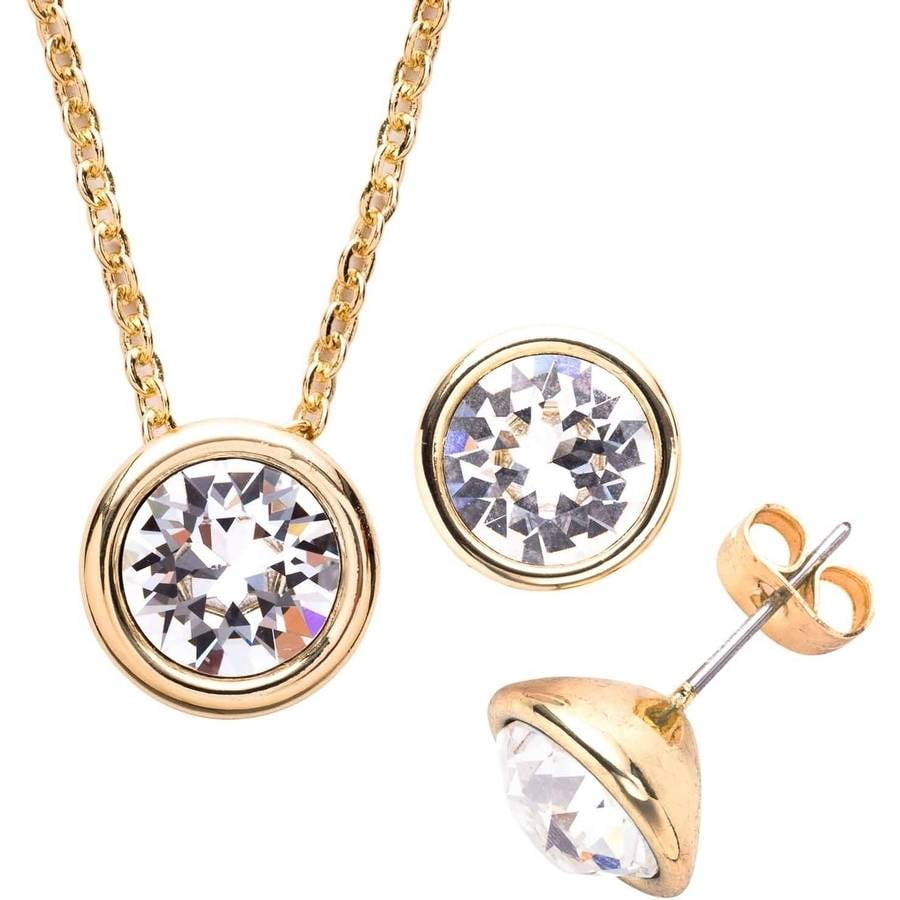 - Swarovski gold necklace and earring set shop
