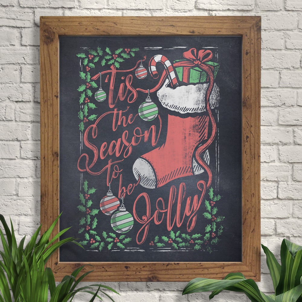 Chalkboard christmas stocking Sale, Tis the Season to Be Jolly Illustration Giclee Art Print - Etsy UK Sale