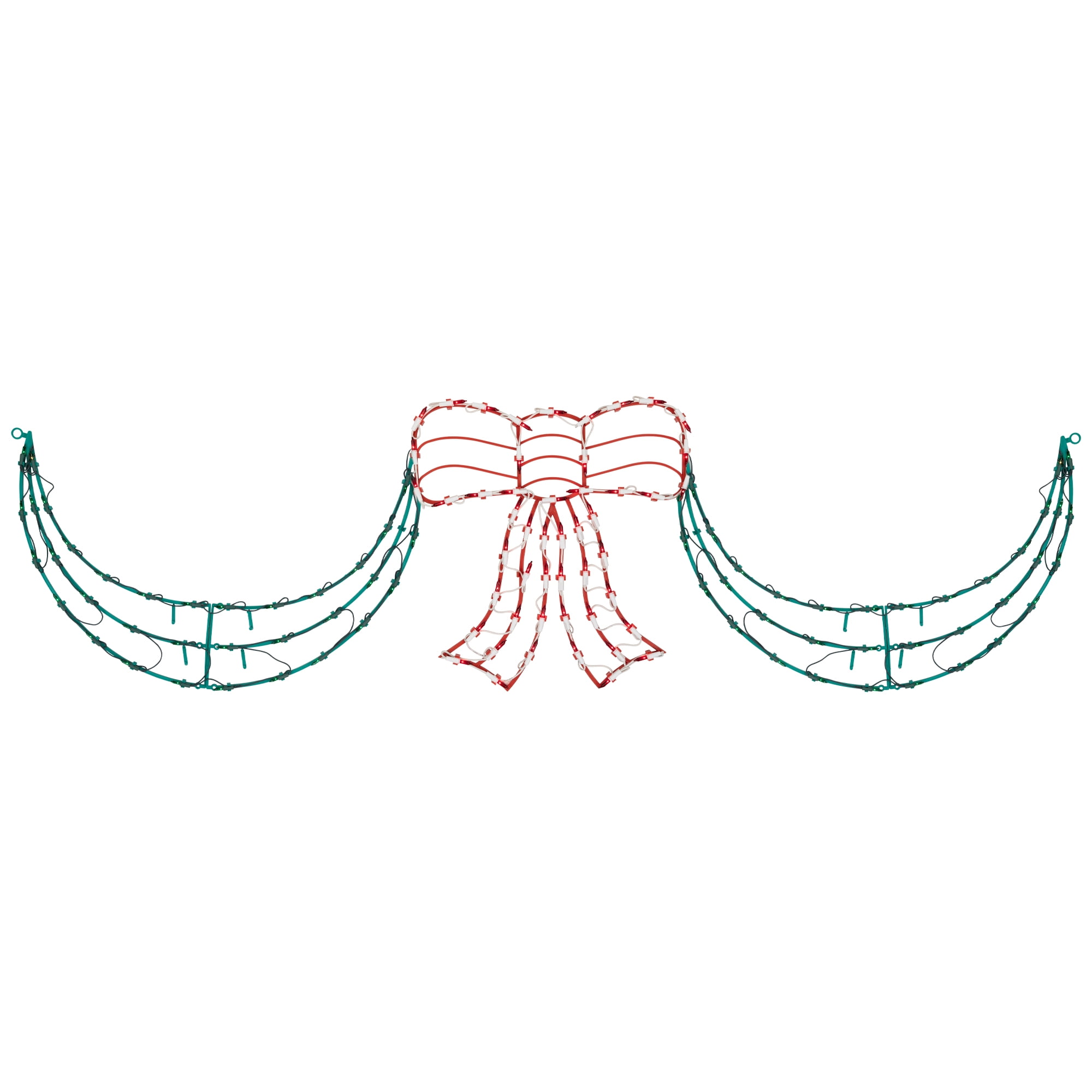 - 3 piece lighted red bow and green swag christmas decoration outlet
