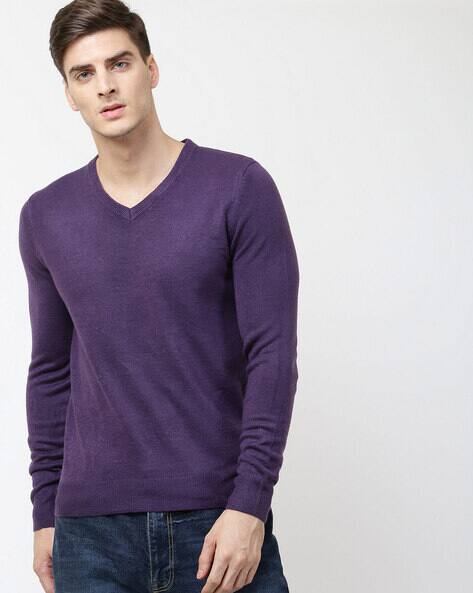 V neck purple sweater Sale