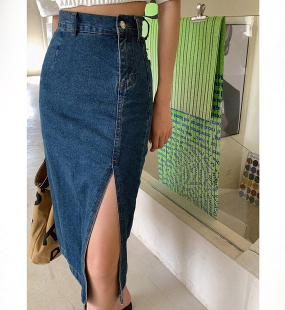 Denim jean pencil skirt Sale, DENIM Pencil Skirt Slim Side Slit Retro Style High Waist High Rise Women Denim Skirt Spring Summer Spring Button Jeans Skirt - Etsy Finland Sale