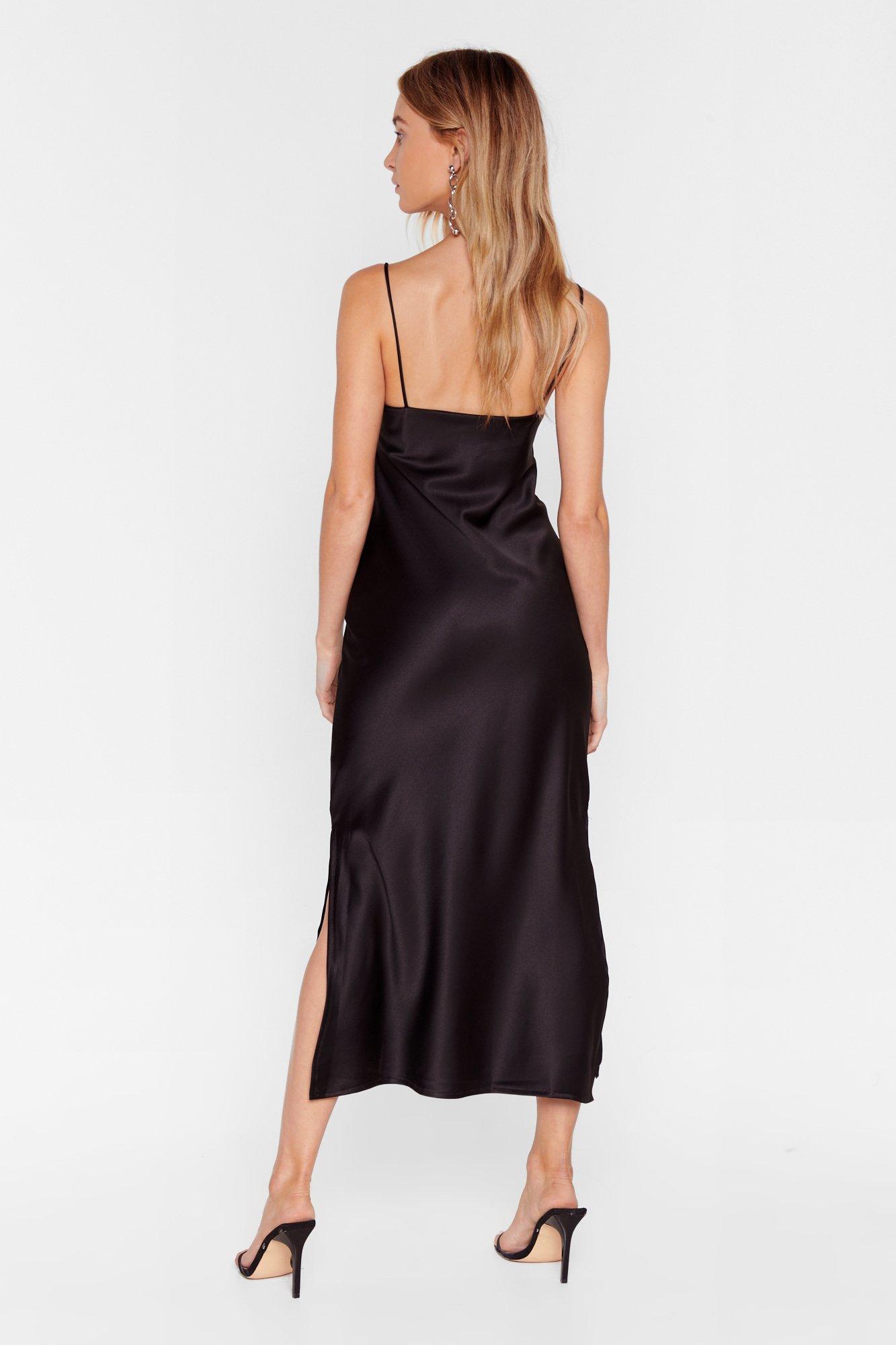 - Black satin slip dress sale