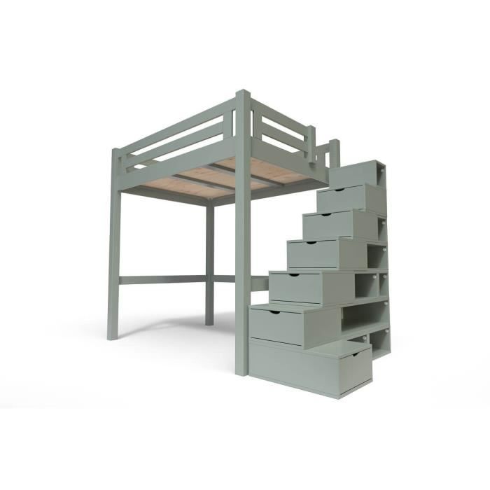 Abc meubles mezzanine Sale, ABC MEUBLES -Lit Mezzanine Alpage bois + escalier cube hauteur réglable-140X200-Gris - Achat / Vente lit mezzanine Lit mezzanine Alpage bois + - Cdiscount Sale